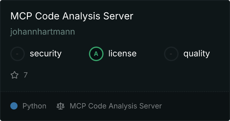 curl -X GET 'https://glama.ai/api/mcp/v1/servers/johannhartmann/mcpcodeanalysis'