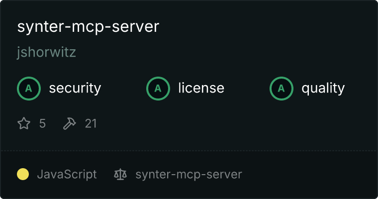 Our directory badge helps users to quickly assess server capabilities, safety, and instructions for installing the server.