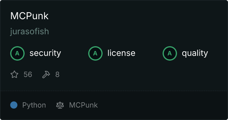 curl -X GET 'https://glama.ai/api/mcp/v1/servers/jurasofish/mcpunk'