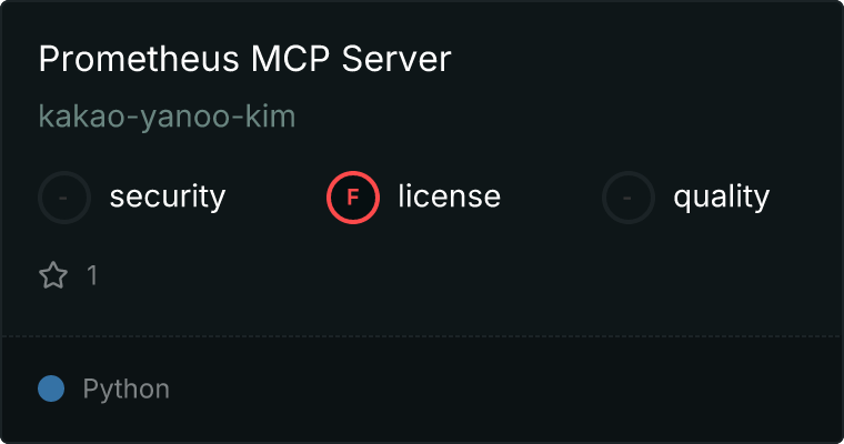 curl -X GET 'https://glama.ai/api/mcp/v1/servers/kakao-yanoo-kim/prometheus-mcp-server-py'