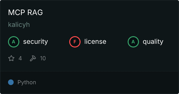 curl -X GET 'https://glama.ai/api/mcp/v1/servers/kalicyh/mcp-rag'