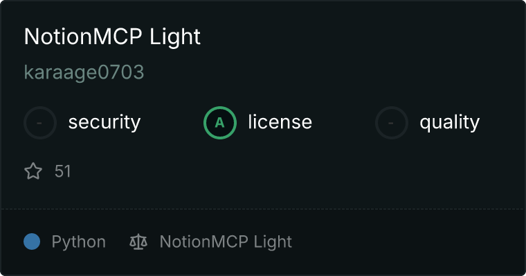 curl -X GET 'https://glama.ai/api/mcp/v1/servers/karaage0703/notion-mcp-light'