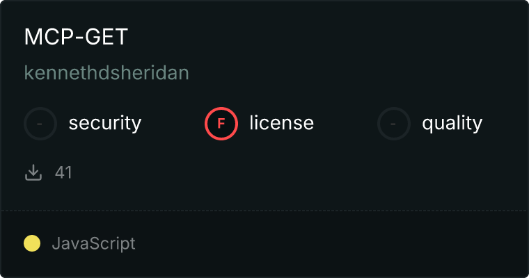 curl -X GET 'https://glama.ai/api/mcp/v1/servers/kennethdsheridan/mcp-get'
