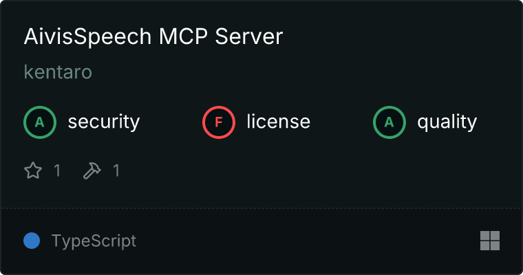 curl -X GET 'https://glama.ai/api/mcp/v1/servers/kentaro/aivis-speech-mcp'