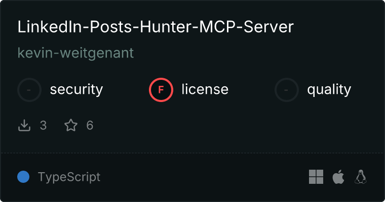curl -X GET 'https://glama.ai/api/mcp/v1/servers/kevin-weitgenant/LinkedIn-Posts-Hunter-MCP-Server'
