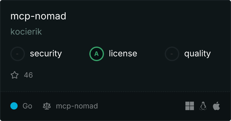 curl -X GET 'https://glama.ai/api/mcp/v1/servers/kocierik/mcp-nomad'