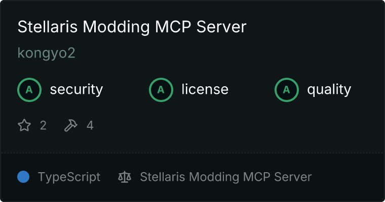 curl -X GET 'https://glama.ai/api/mcp/v1/servers/kongyo2/Stellaris-Modding-MCP-Server'