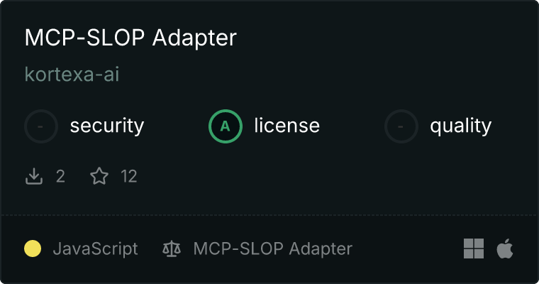 curl -X GET 'https://glama.ai/api/mcp/v1/servers/kortexa-ai/mcp-slop-adapter'