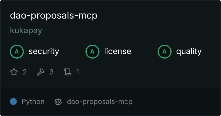 curl -X GET 'https://glama.ai/api/mcp/v1/servers/kukapay/dao-proposals-mcp'