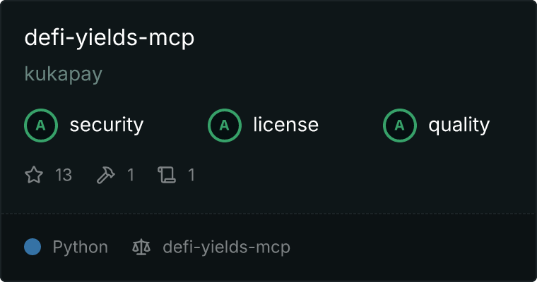 curl -X GET 'https://glama.ai/api/mcp/v1/servers/kukapay/defi-yields-mcp'