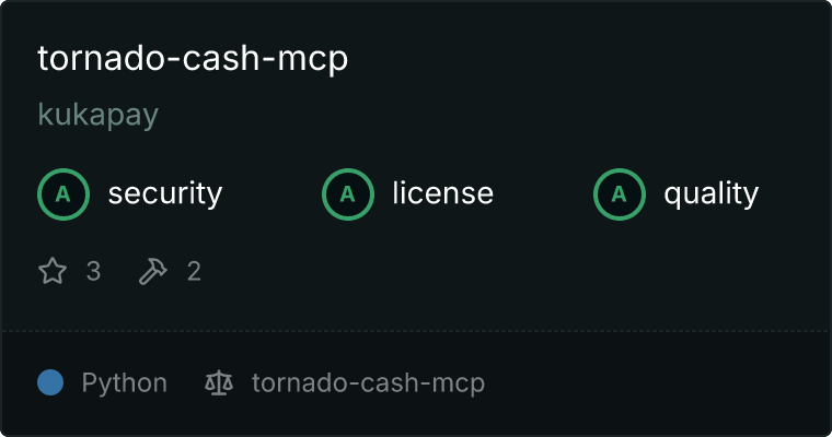 curl -X GET 'https://glama.ai/api/mcp/v1/servers/kukapay/tornado-cash-mcp'