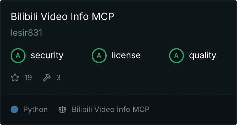 curl -X GET 'https://glama.ai/api/mcp/v1/servers/lesir831/bilibili-video-info-mcp'