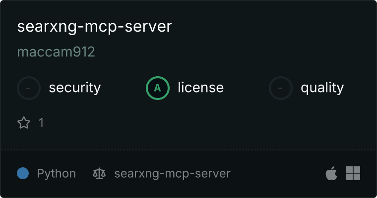 curl -X GET 'https://glama.ai/api/mcp/v1/servers/maccam912/searxng-mcp-server'