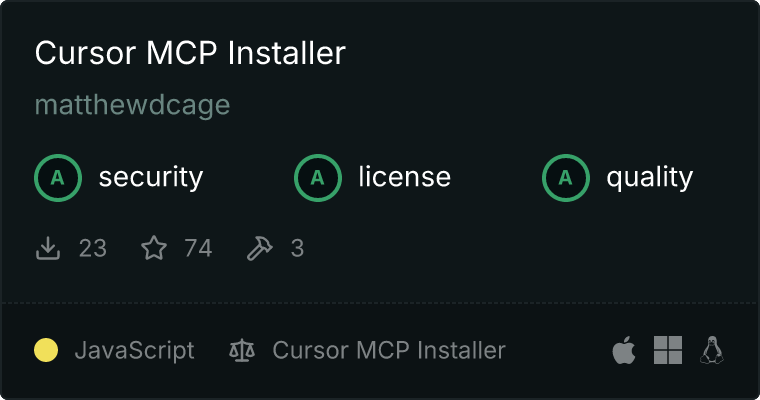 Our directory badge helps users to quickly assess server capabilities, safety, and instructions for installing the server.