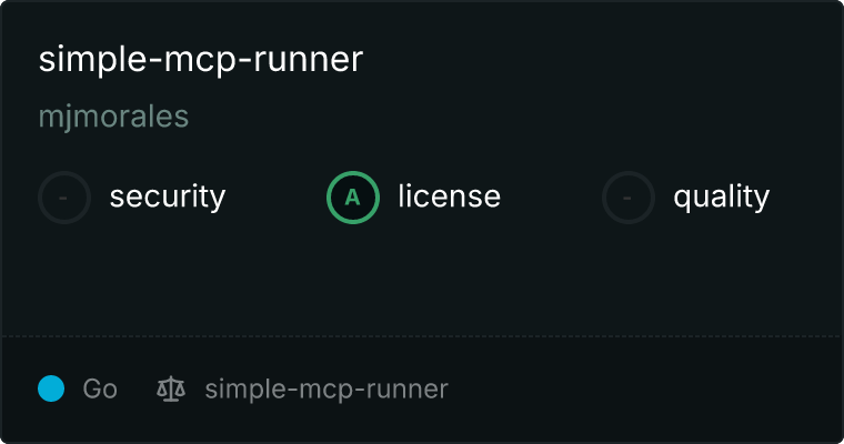 curl -X GET 'https://glama.ai/api/mcp/v1/servers/mjmorales/simple-mcp-runner'