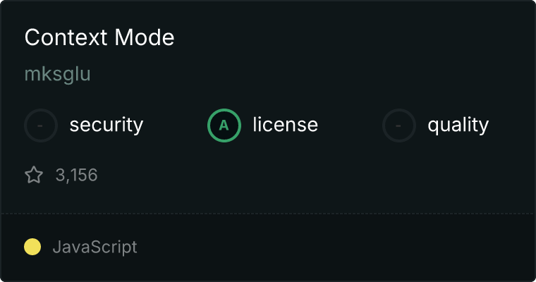 curl -X GET 'https://glama.ai/api/mcp/v1/servers/mksglu/claude-context-mode'