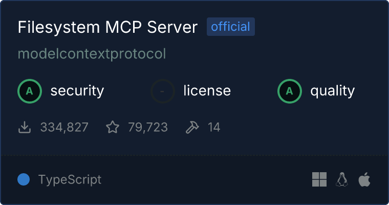 Our directory badge helps users to quickly assess server capabilities, safety, and instructions for installing the server.