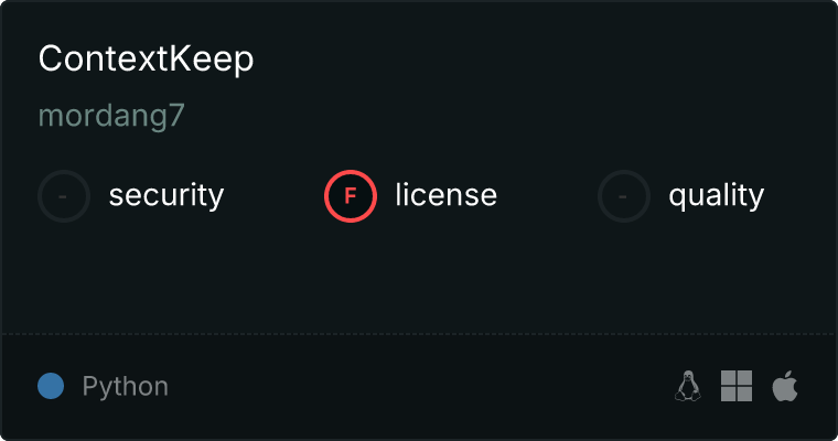 curl -X GET 'https://glama.ai/api/mcp/v1/servers/mordang7/ContextKeep'