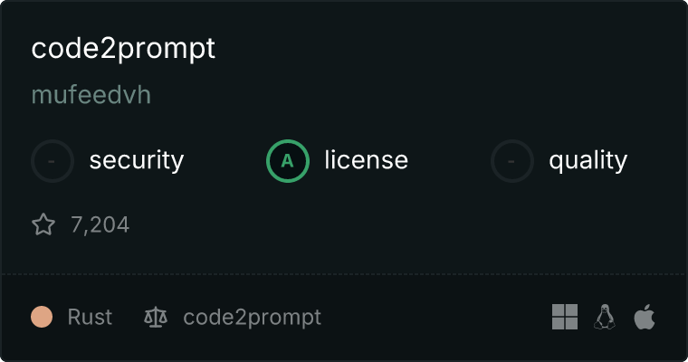 curl -X GET 'https://glama.ai/api/mcp/v1/servers/mufeedvh/code2prompt'
