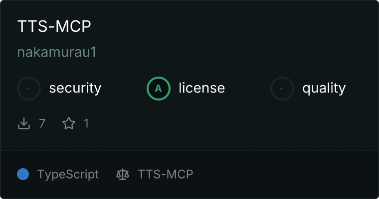 curl -X GET 'https://glama.ai/api/mcp/v1/servers/nakamurau1/tts-mcp'