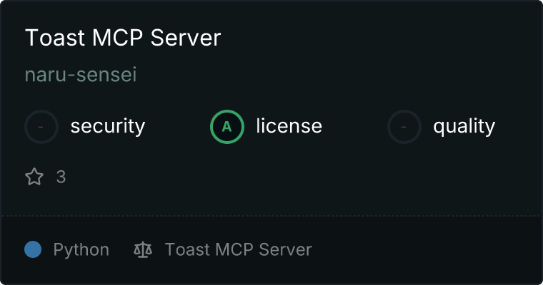 curl -X GET 'https://glama.ai/api/mcp/v1/servers/naru-sensei/-toast-mcp-server'