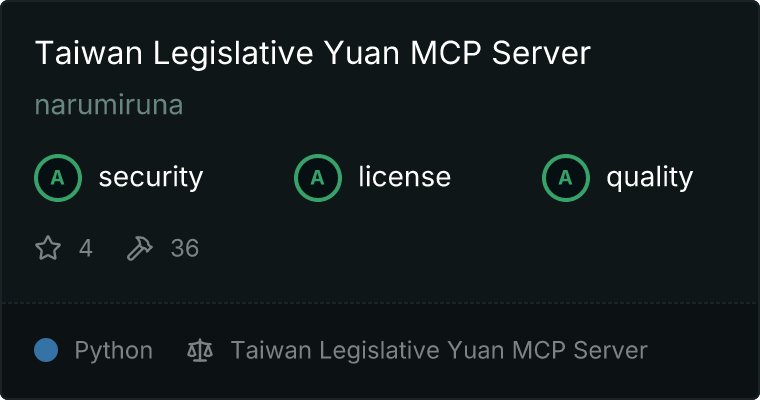 Our directory badge helps users to quickly assess server capabilities, safety, and instructions for installing the server.