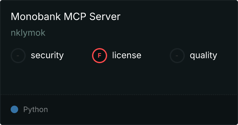 curl -X GET 'https://glama.ai/api/mcp/v1/servers/nklymok/Monobank-MCP'