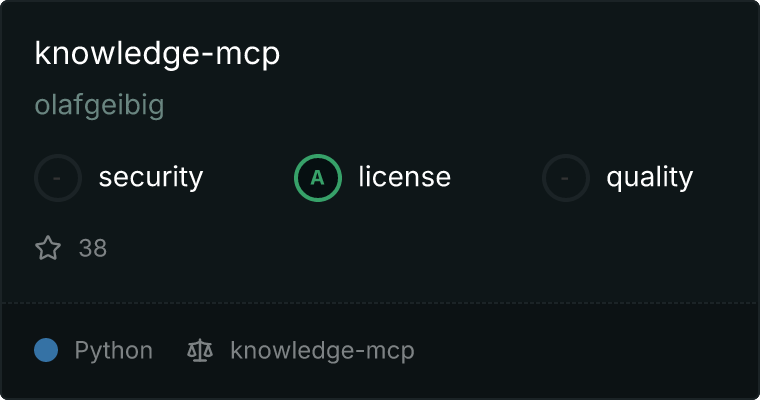 curl -X GET 'https://glama.ai/api/mcp/v1/servers/olafgeibig/knowledge-mcp'