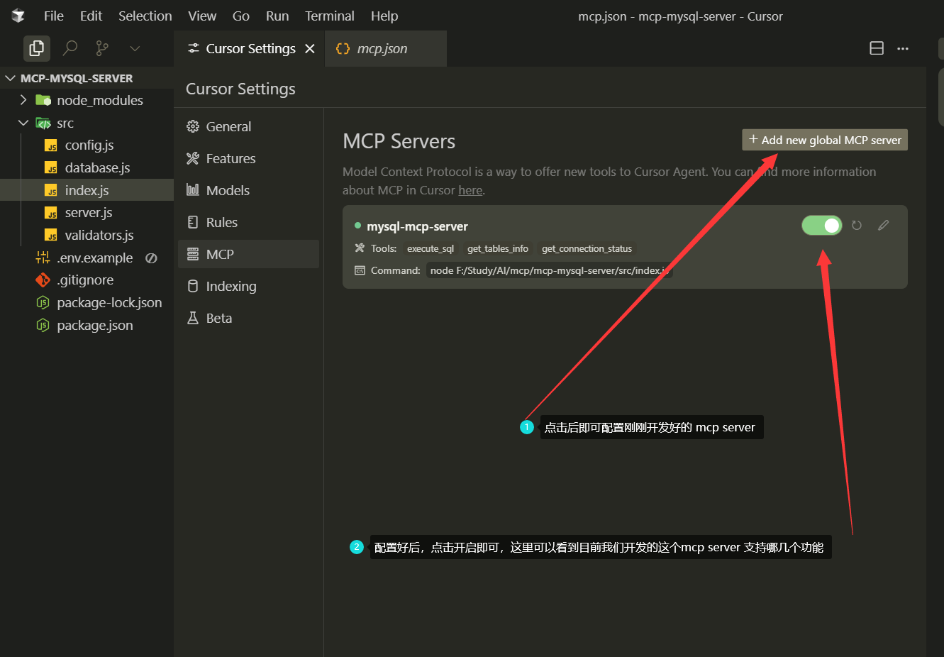 在 Cursor 中 验证 开发的 MCP Server 是否能运行