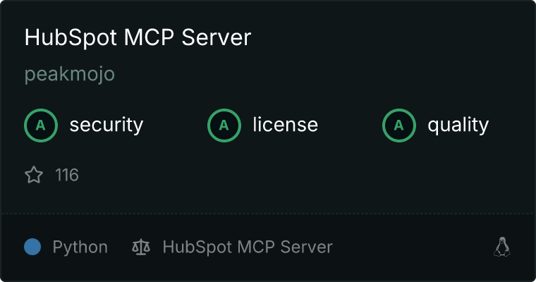 curl -X GET 'https://glama.ai/api/mcp/v1/servers/peakmojo/mcp-hubspot'