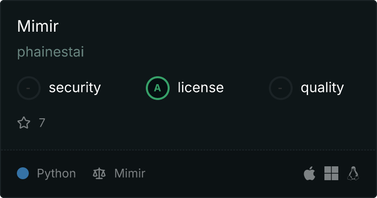 curl -X GET 'https://glama.ai/api/mcp/v1/servers/phainestai/mimir'