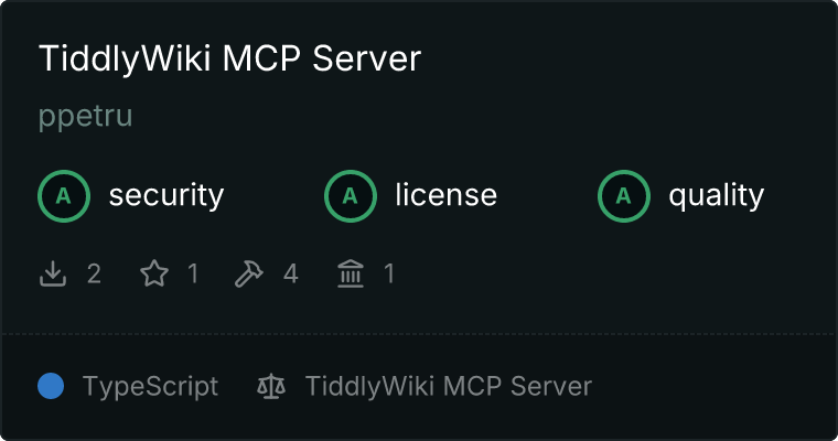 curl -X GET 'https://glama.ai/api/mcp/v1/servers/ppetru/tiddlywiki-mcp'