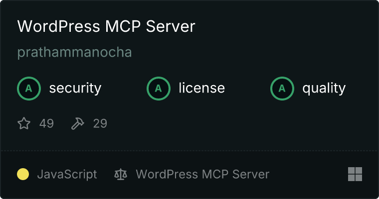 Our directory badge helps users to quickly assess server capabilities, safety, and instructions for installing the server.