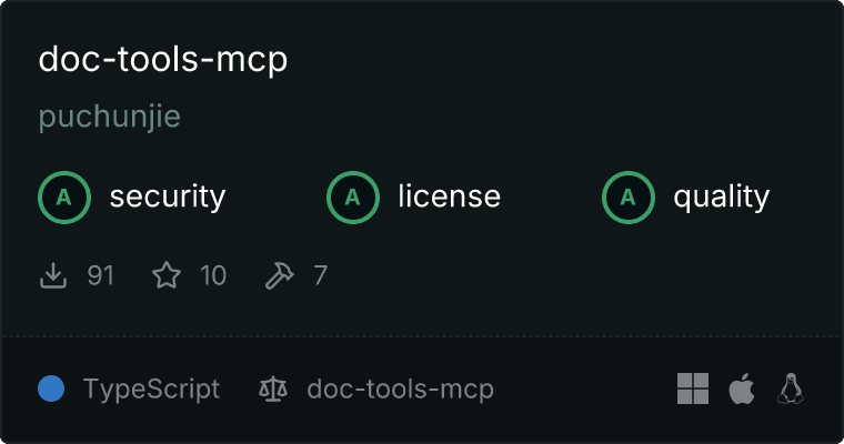 Our directory badge helps users to quickly assess server capabilities, safety, and instructions for installing the server.
