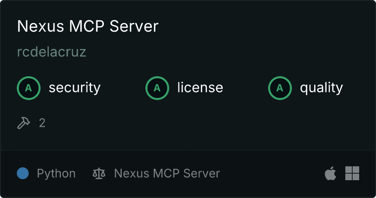 curl -X GET 'https://glama.ai/api/mcp/v1/servers/rcdelacruz/nexus-mcp'