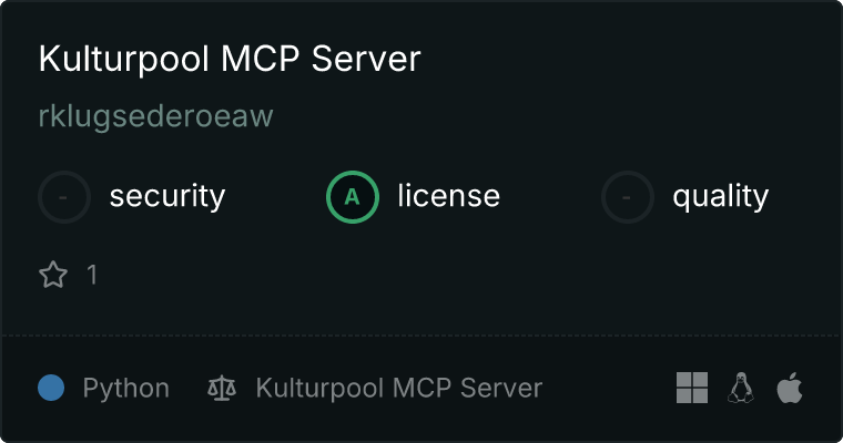 curl -X GET 'https://glama.ai/api/mcp/v1/servers/rklugsederoeaw/kulturpool_mcp_server'