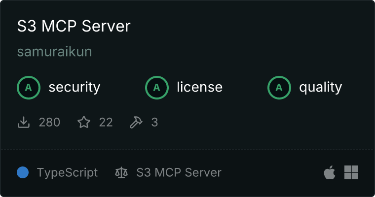 curl -X GET 'https://glama.ai/api/mcp/v1/servers/samuraikun/aws-s3-mcp'