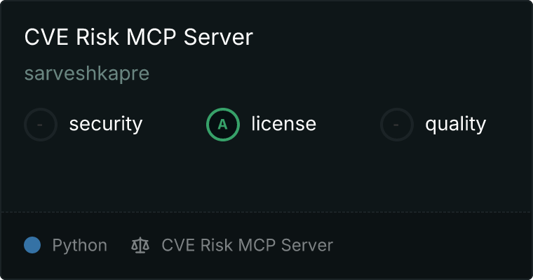 curl -X GET 'https://glama.ai/api/mcp/v1/servers/sarveshkapre/cve-risk-mcp'