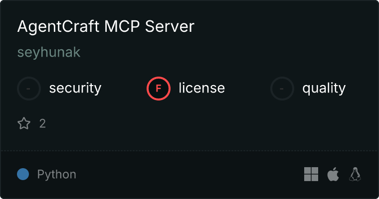 curl -X GET 'https://glama.ai/api/mcp/v1/servers/seyhunak/agentcraft-mcp'