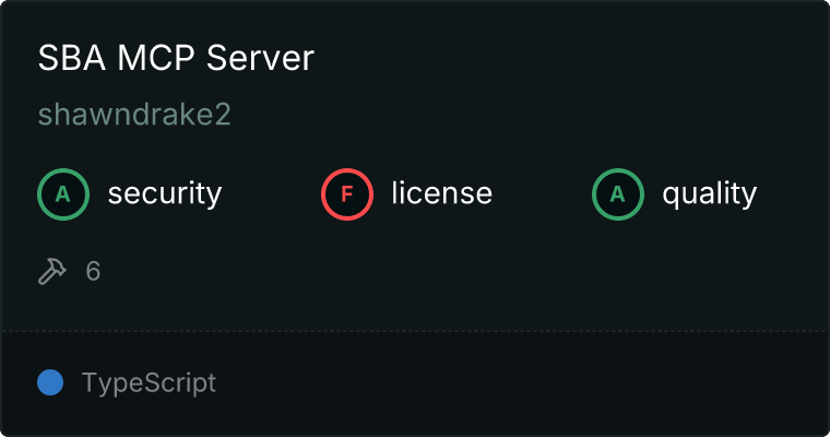 curl -X GET 'https://glama.ai/api/mcp/v1/servers/shawndrake2/mcp-sba'