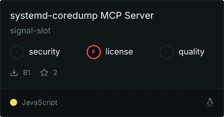 curl -X GET 'https://glama.ai/api/mcp/v1/servers/signal-slot/mcp-systemd-coredump'