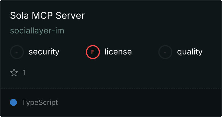 curl -X GET 'https://glama.ai/api/mcp/v1/servers/sociallayer-im/sola-mcp'