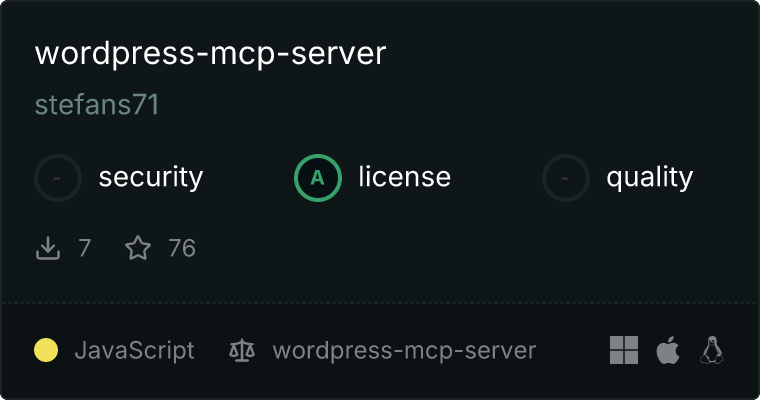 curl -X GET 'https://glama.ai/api/mcp/v1/servers/stefans71/wordpress-mcp-server'