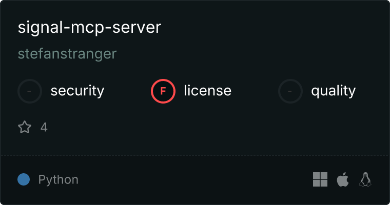curl -X GET 'https://glama.ai/api/mcp/v1/servers/stefanstranger/signal-mcp-server'