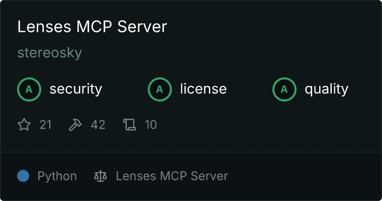 Our directory badge helps users to quickly assess server capabilities, safety, and instructions for installing the server.