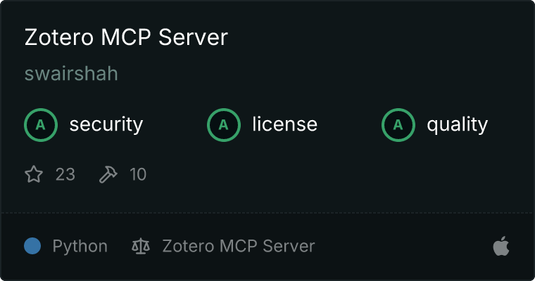 Our directory badge helps users to quickly assess server capabilities, safety, and instructions for installing the server.