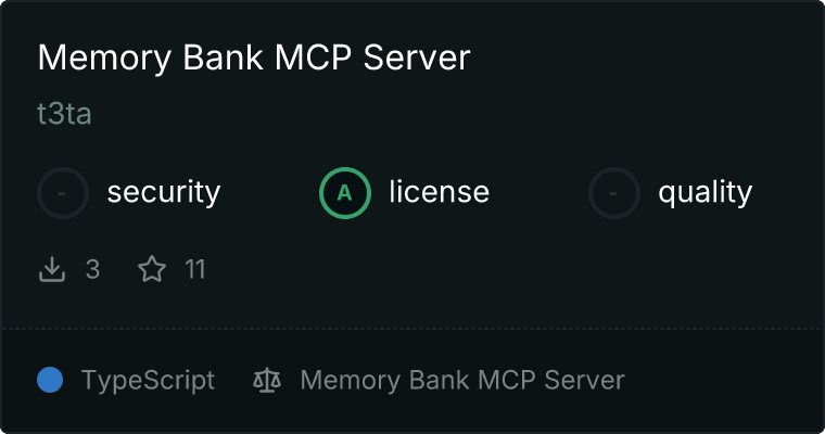 curl -X GET 'https://glama.ai/api/mcp/v1/servers/t3ta/memory-bank-mcp-server'