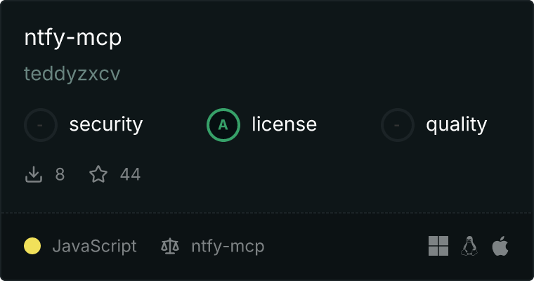 curl -X GET 'https://glama.ai/api/mcp/v1/servers/teddyzxcv/ntfy-mcp'
