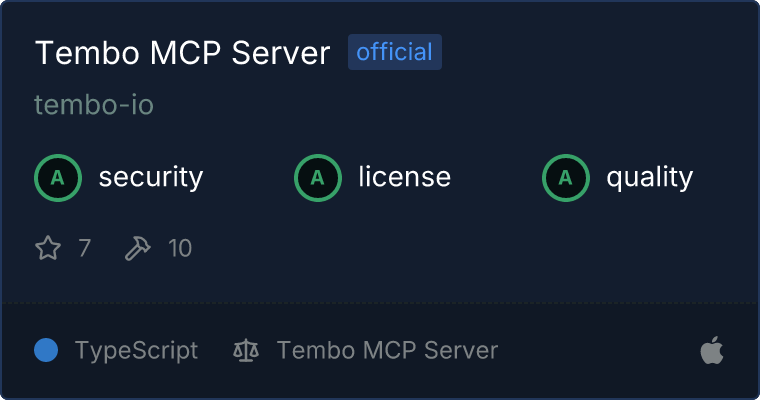 Our directory badge helps users to quickly assess server capabilities, safety, and instructions for installing the server.
