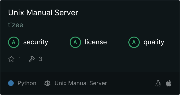 curl -X GET 'https://glama.ai/api/mcp/v1/servers/tizee/mcp-unix-manual'